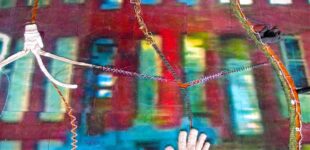 The installation recalls tools and materials used in the original project “Conversations With Time” in Baltimore, and words – heard or seen there. Booklets, which generated dialogue, workshops and even two scripts could be studied. However the installation is not a documentation. It is a memorialization of the intense and emotional time in West Baltimore. Our mending together pieces of the façades tells of our hopes to mend inter-generational relationships – and our regrets to be so far away.
