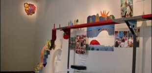 - To show what RFS clients had created during the workshops: sometimes the real objects, sometimes picture montages of workshop activities, mounted on shaped corrugated metal panels.