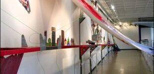 - A bridge would run the full 80 foot wall, horizontally against the sloped floor of the gallery. It would carry “walking figures” who would have to overcome obstacles like a shelled-out bridge sections or neck-breaking stairs, at the end of the “Journey”.